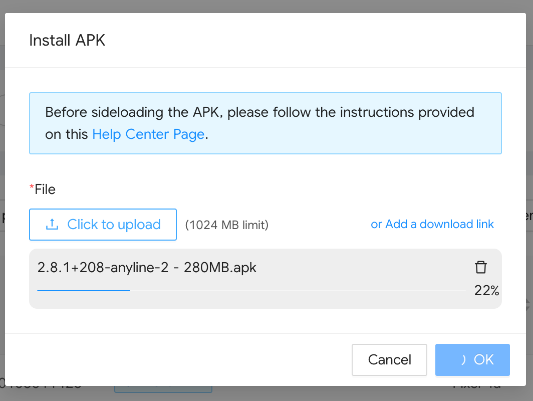 You can now upload APK files up to 1024 MB directly or provide a public download link.