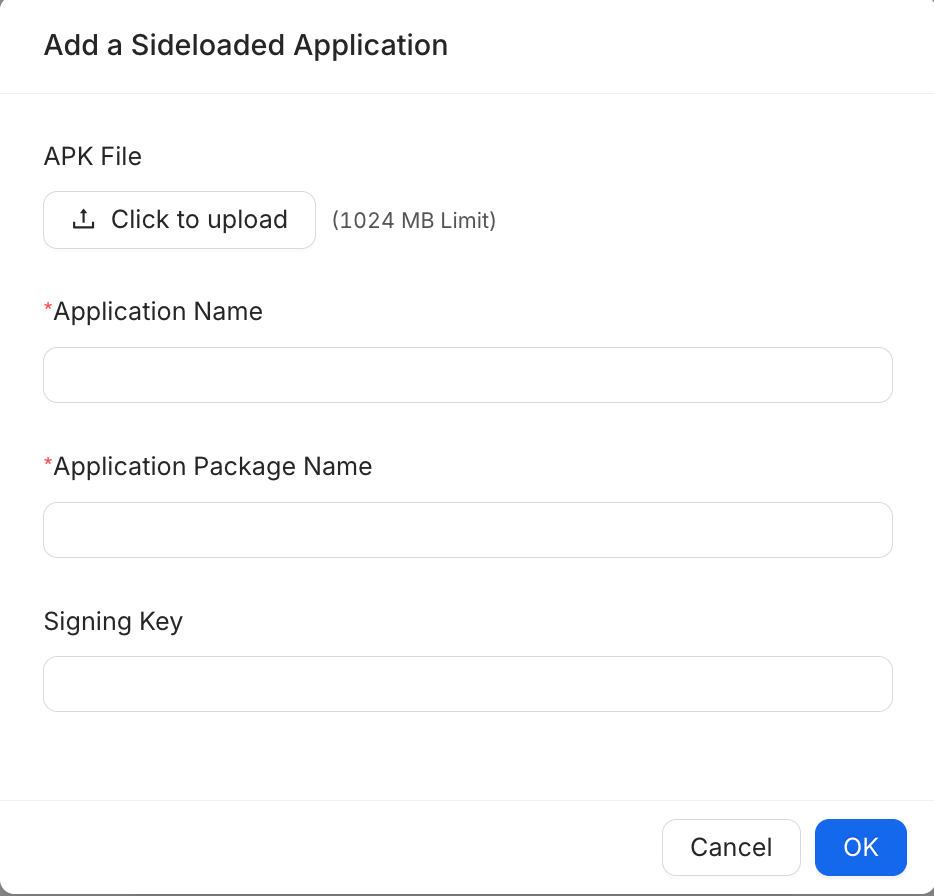 This article explains how to correctly configure, upload, and deploy a sideloaded APK through the WizyEMM console. These steps ensure that the APK is properly recognized, signed, and pushed to devices using the Install APK command. It also covers when a sideloaded app needs to be added to a profile for installation or kiosk usage.