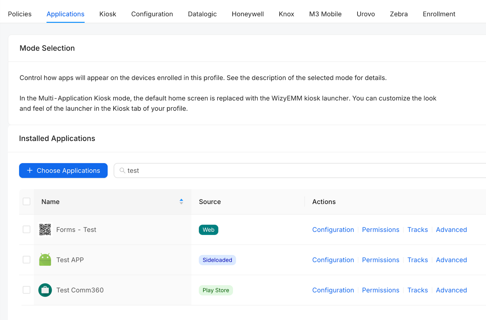 Important Note: This step is mandatory only for Restricted Play Store and Kiosk profiles. For profiles configured with Open Play Store, users are typically permitted to install APKs directly without the need for the application to be explicitly added to this installed list.