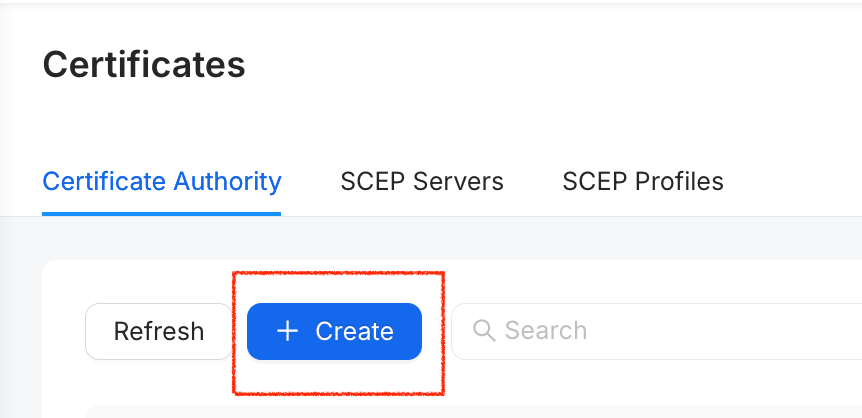 Click the + Create button to add a new Certificate Authority.