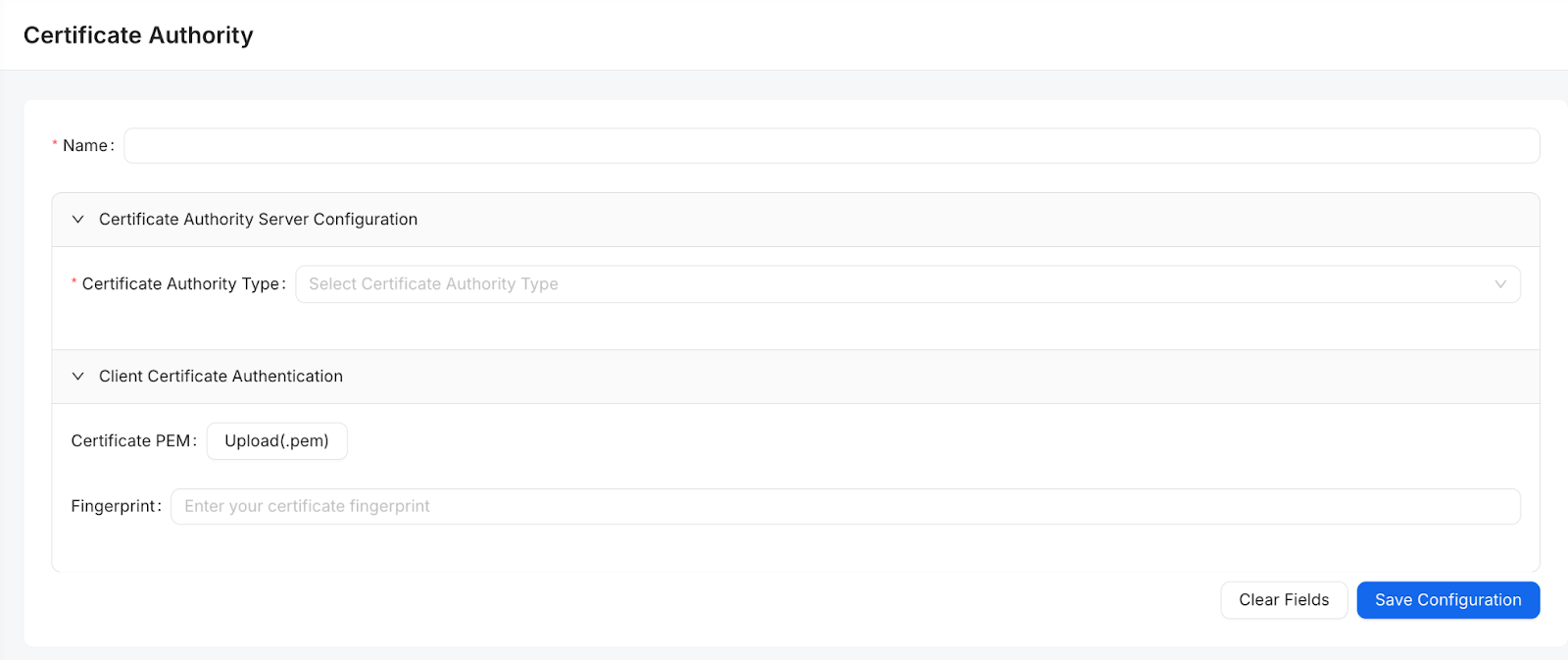 Certificate Authority Type: Select your provider from the dropdown menu.