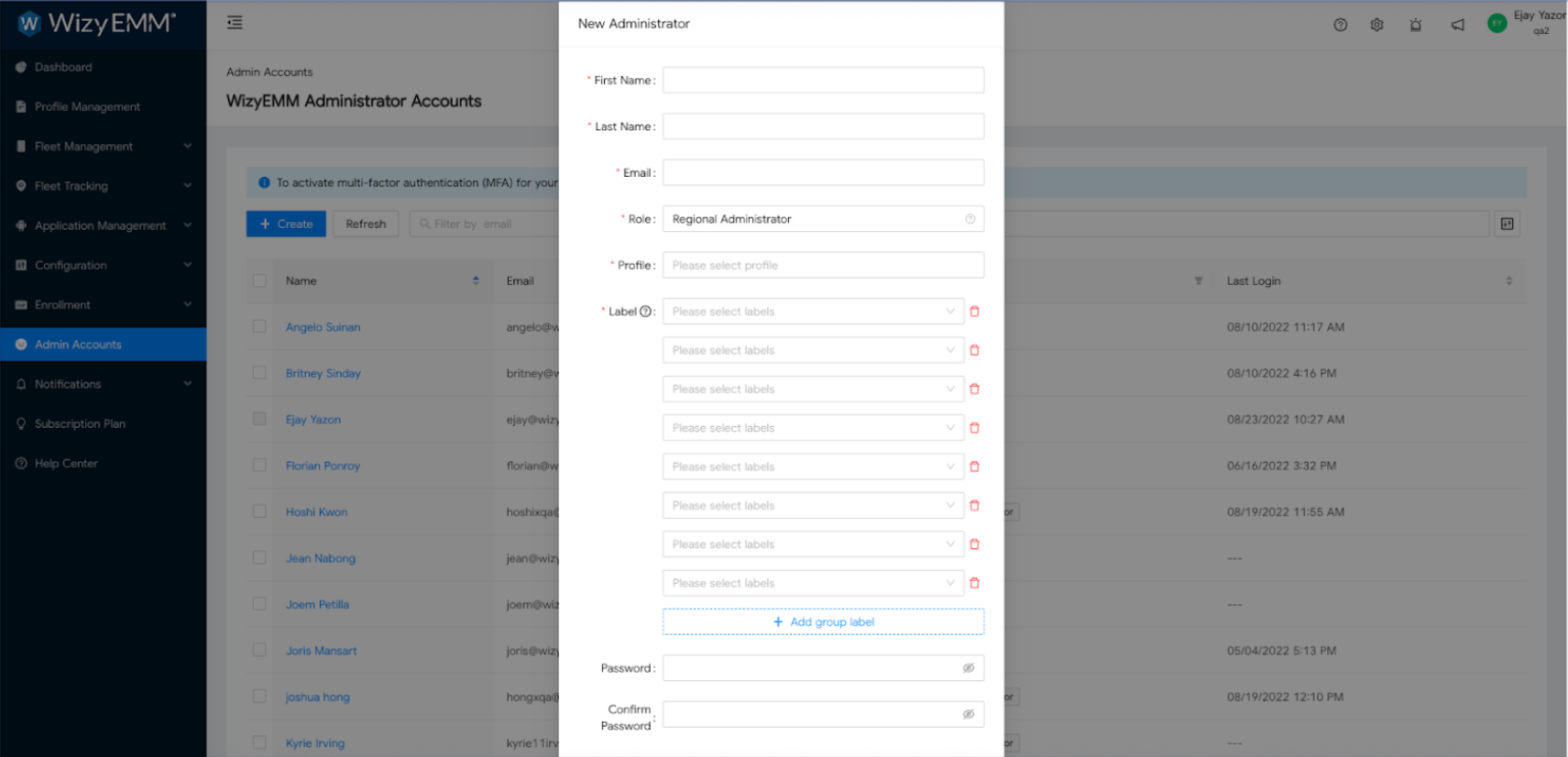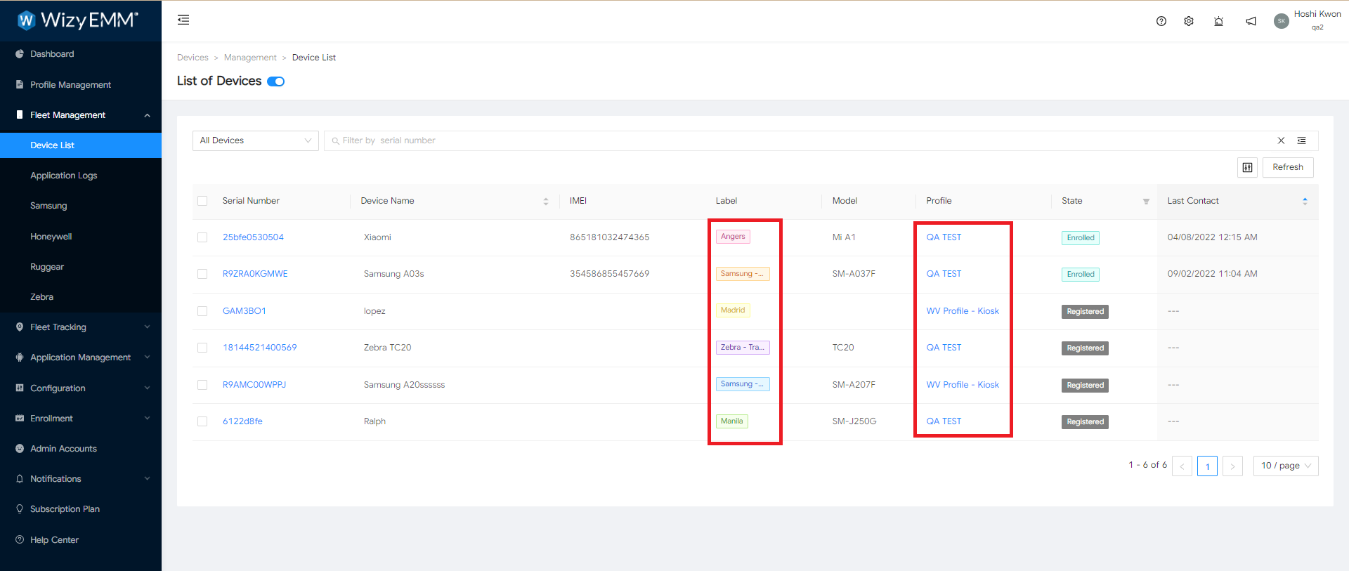 Un administrador regional puede inscribir y borrar dispositivos desde la consola. Sin embargo, no todos los dispositivos son visibles para él. Solo los dispositivos vinculados a los perfiles y etiquetas específicos declarados al agregarlo.
