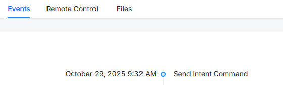 Vérifiez l'action en consultant l'onglet Événements sur la page des détails de l'appareil pour voir la confirmation "Envoyer la commande d'intention".